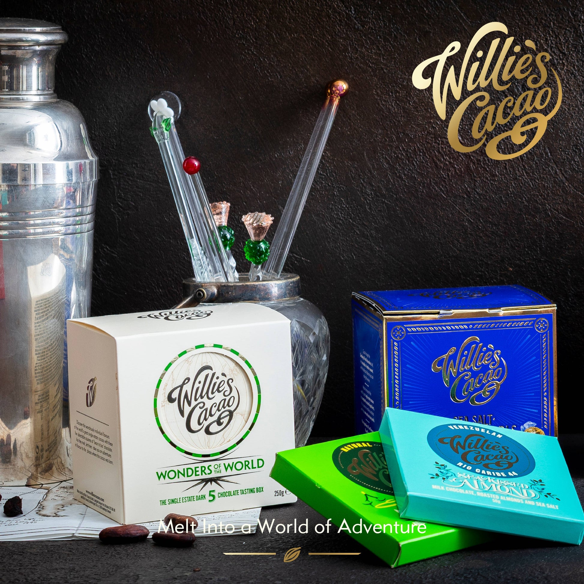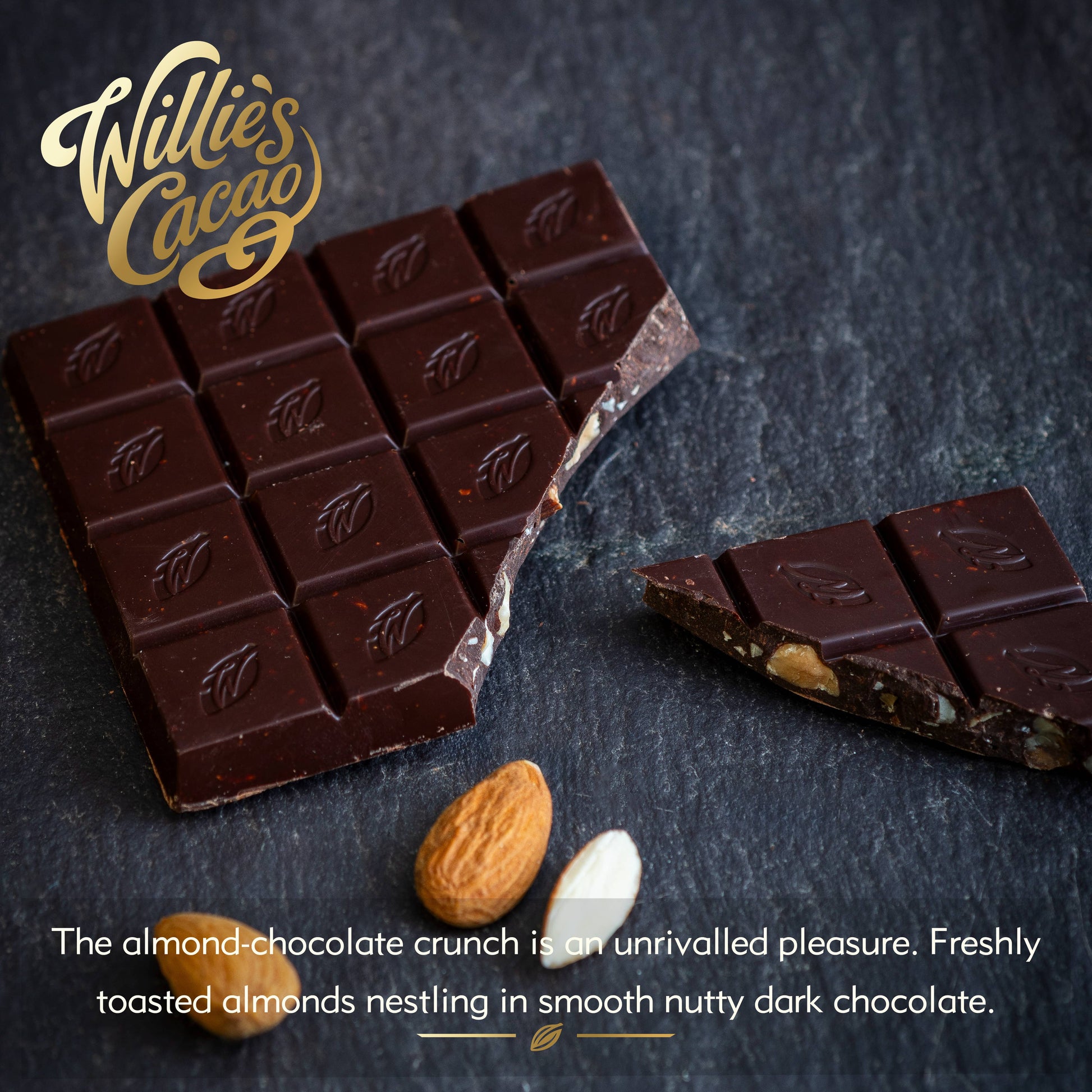 The almond-chocolate crunch is an unrivalled pleasure. Almonds are kings of the nut world and here they are nestling in my smooth, nutty Sur del Lago dark chocolate. All I have done is to give them a gentle roast to awaken their sweet, almost buttery flavour. 100% Natural. Vegan. Soya Free. Gluten Free. Direct Trade. I make all my chocolate in small batches bean to bar from completely natural ingredients and some of the world’s great single estate cacaos. Ethically sourced - Direct Trade. Being a cocoa farmer himself, Willie puts the farmers at the heart of how he does business, buying all his cacao Direct Trade, paying a higher price premium than Fair Trade. Willie Harcourt-Cooze, cacao farmer, pioneer and chocolate fanatic, has redefined how millions of people worldwide think about chocolate. He started out buying a cocoa farm in Venezuela 20 years ago, and set up the UK’s first artisan ‘bean to bar’ chocolate factory in 2008.