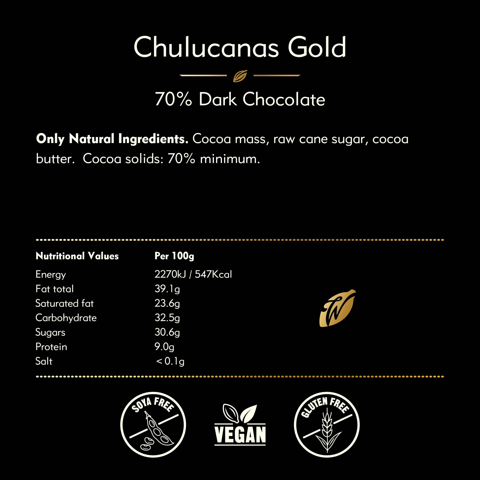 Chulucanas 70% dark chocolate, is an adventure in taste. It melts taking you to the mountains of the Morropon province of Peru, and their much prized Criollo beans with their distinctive notes of raisins and plums. 100% Natural. Vegan. Soya Free. Gluten Free. Direct Trade. Artisan chocolate, craft made in small batches from bean to bar, to capture the mind-blowingly different flavours of the world’s great, single estate cacaos. This takes up to 21 days at low temperatures, compared to industrial chocolate which is made in a few hours. The chocolate is 100% natural, containing simply cacao, raw cane sugar and natural cocoa butter - no vanilla or soya lecithin to hide the beautiful flavour notes of the beans. Pure Flavours. Pure Pleasure. Ethically sourced - Direct Trade. Being a cocoa farmer himself, Willie puts the farmers at the heart of how he does business, buying all his cacao Direct Trade, paying a higher price premium than Fair Trade.