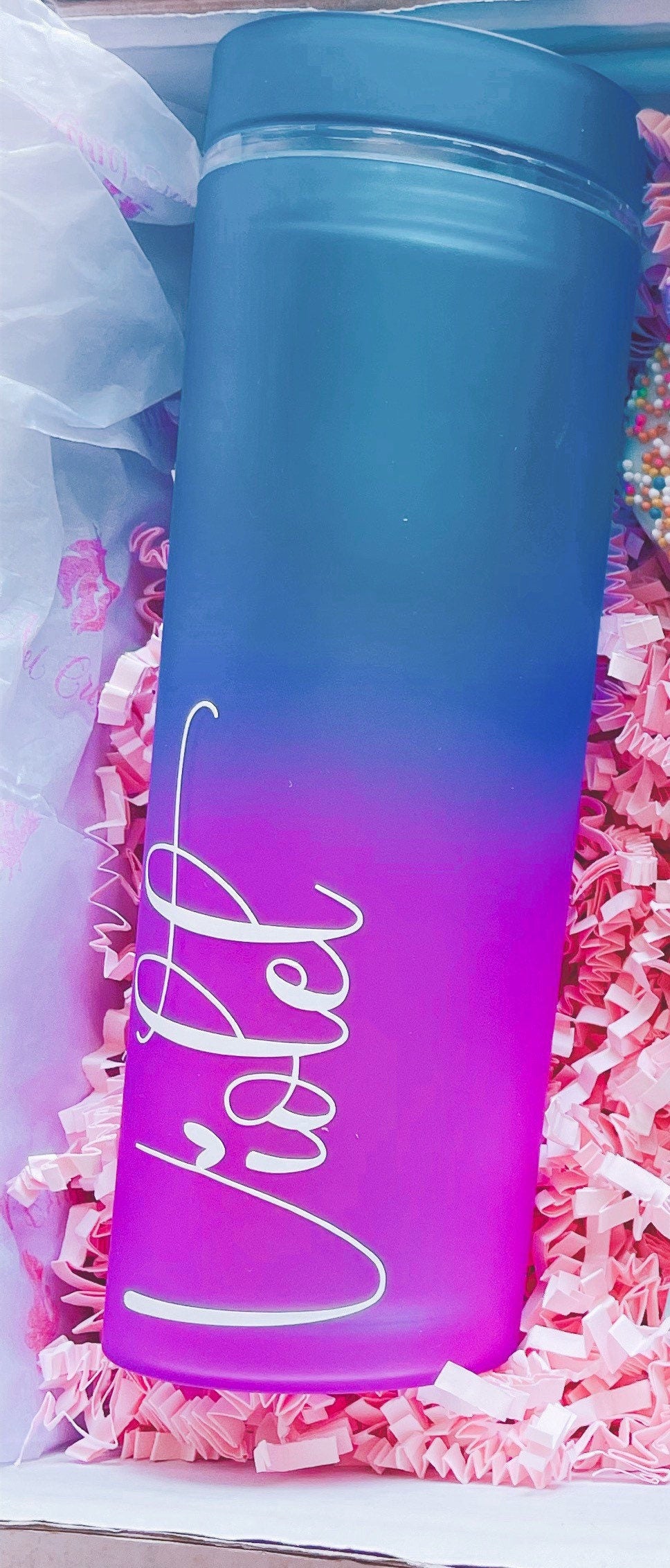 These stunning 400ml BPA free double walled silver holographic plastic cups with straw.